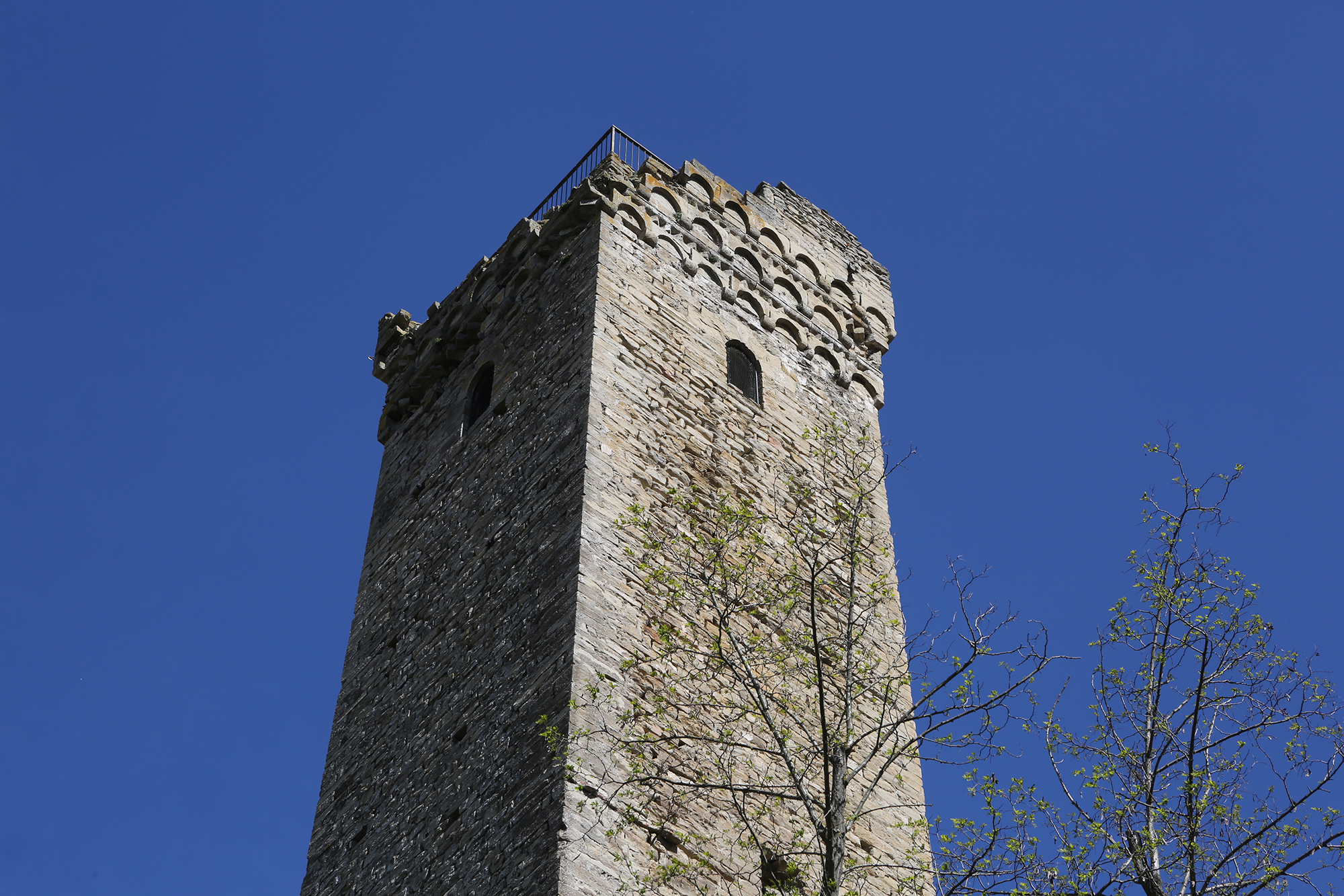 La torre, del XII secolo, costruita dai Marchesi del Carretto, è aperta al pubblico e bisogna salire 100 gradini per giungere in cima e godere della vista dell’intero borgo, di forma circolare, molto ben conservato.