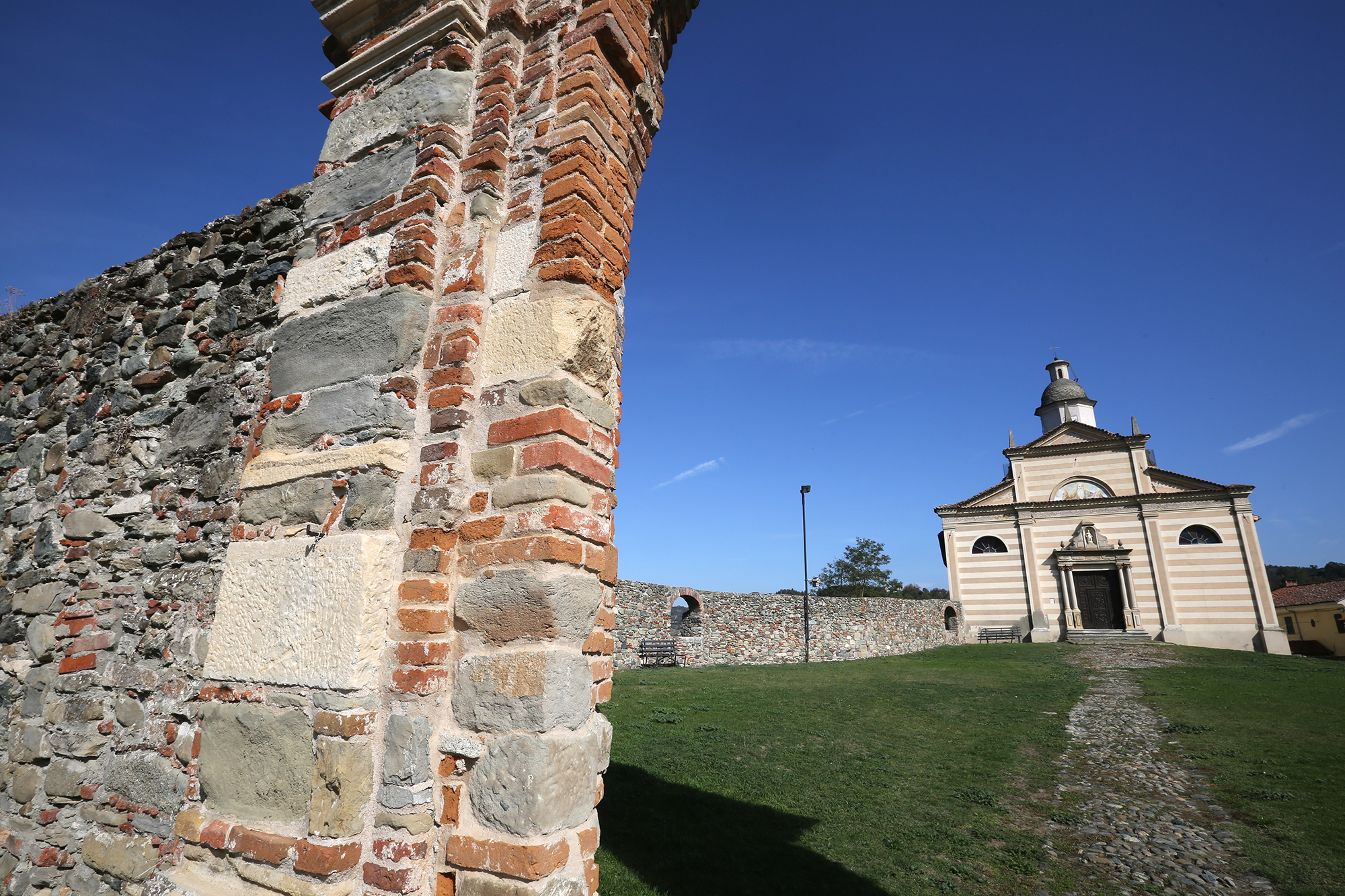Pochi sono i ruderi del castello che fu distrutto nel XVII secolo dagli spagnoli e quelli rimasti sono poco visibili se non dal cimitero del paese. Proprio nel luogo occupato dall’originario cimitero del borgo sorge, protetta ed isolata da un muro di pietra con una porta sormontata da un arco cinquecentesco, la chiesa parrocchiale di Sant’Ambrogio la cui statua, posta all’ingresso, reca la data del 1592. Dotata di tre navate all’interno troviamo arredi, colonne in pietra, un battistero con acquasantiera e pale dipinte risalenti al tardo cinquecento, mentre gli arredi in legno e le decorazioni in stucco appartengono decisamente alla seconda metà del 1700.
