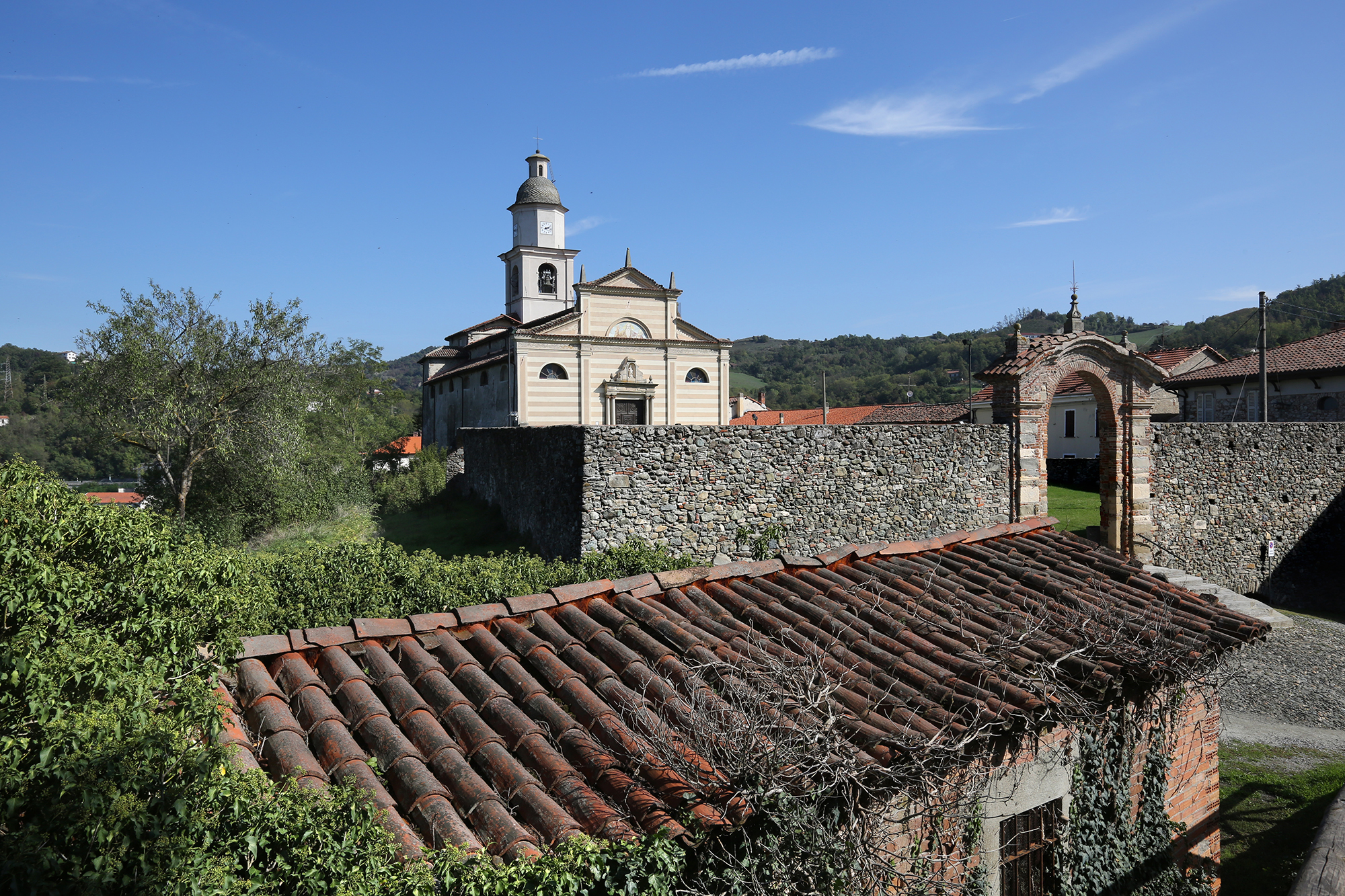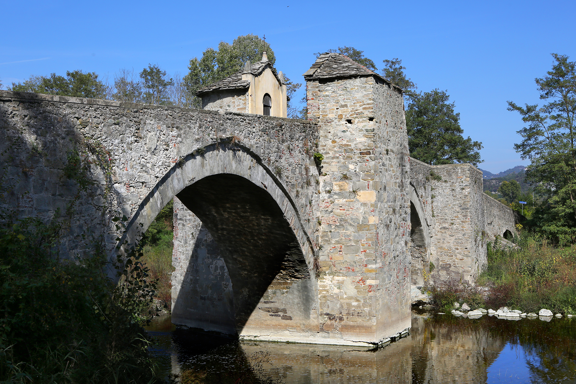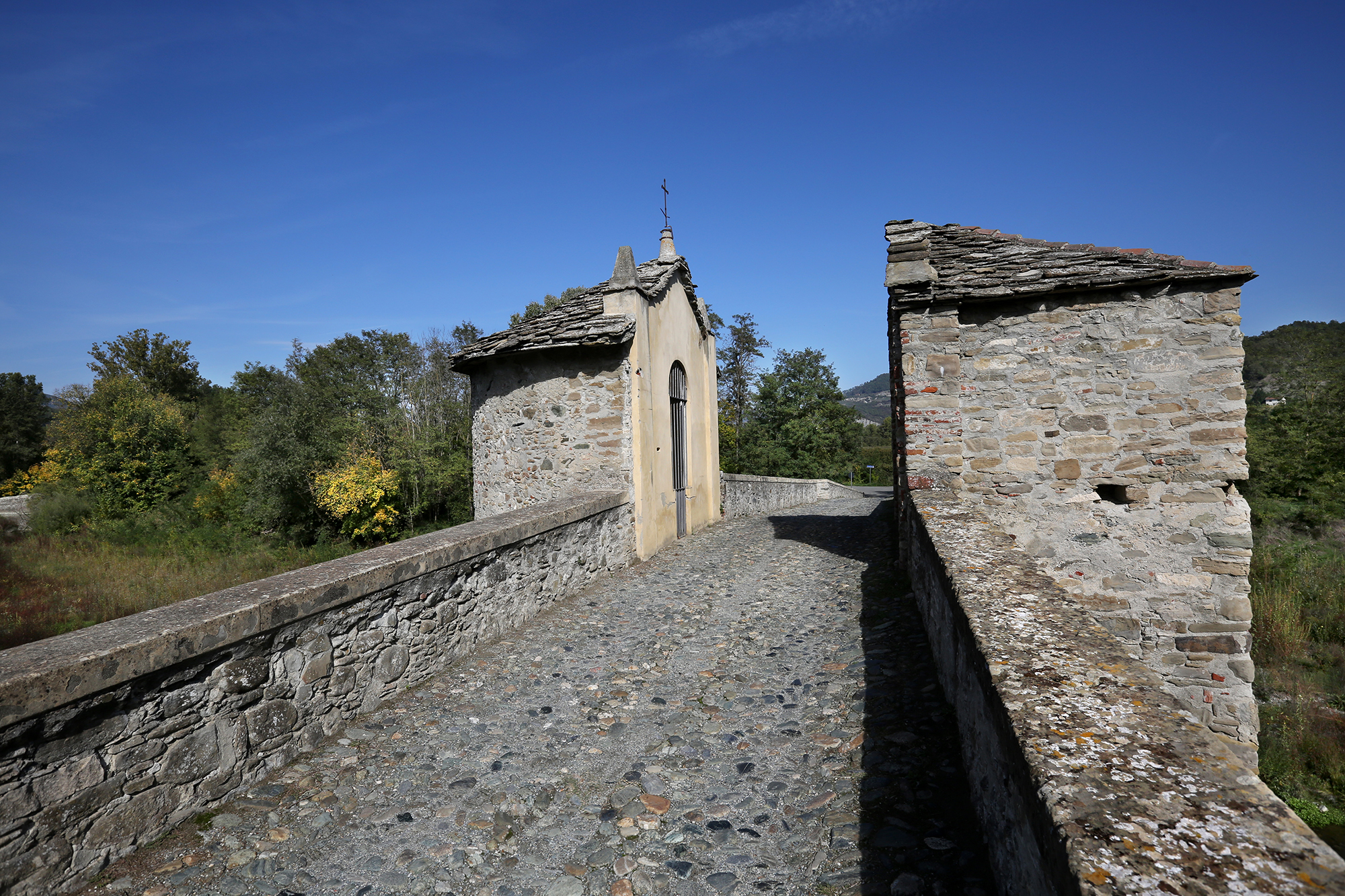 Per raggiungerla bisogna percorre un breve tragitto che porta ad uno splendido ponte medioevale che attraversa il Bormida. È il ponte di San Rocco, meravigliosamente conservato con la caratteristica forma a schiena d’asino, costruito nel 1200 per collegare l’Abbazia alla via Emilia. In pietra arenaria il ponte presenta ancora due garitte che servivano a proteggere il personale che doveva riscuotere il pedaggio.